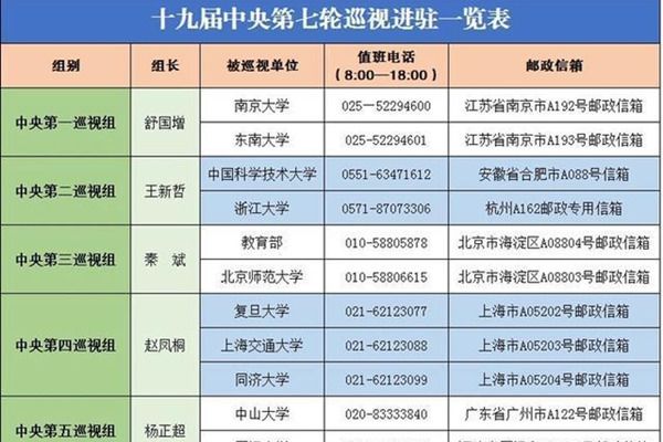 中央巡视组公开热线电话1、中央巡视组公开热线电话第七轮第一巡视组专门值班热线电话:025-52294601(东南大学)、025-52294600(南京大学),巡视组每天受理电话的时间...